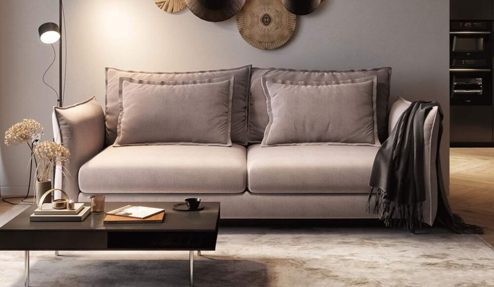 Canapé convertible 3 Places Gris Clair avec Coussins